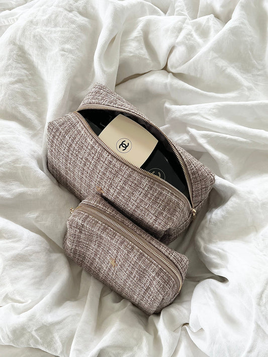 DARK Tweed Make-up Pouch Small, Warm taupe