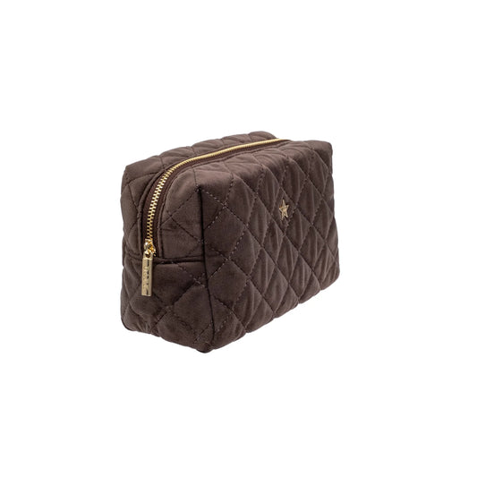 DARK Velvet Square Quilted Make-up Pouch Large, Chocolate brown
