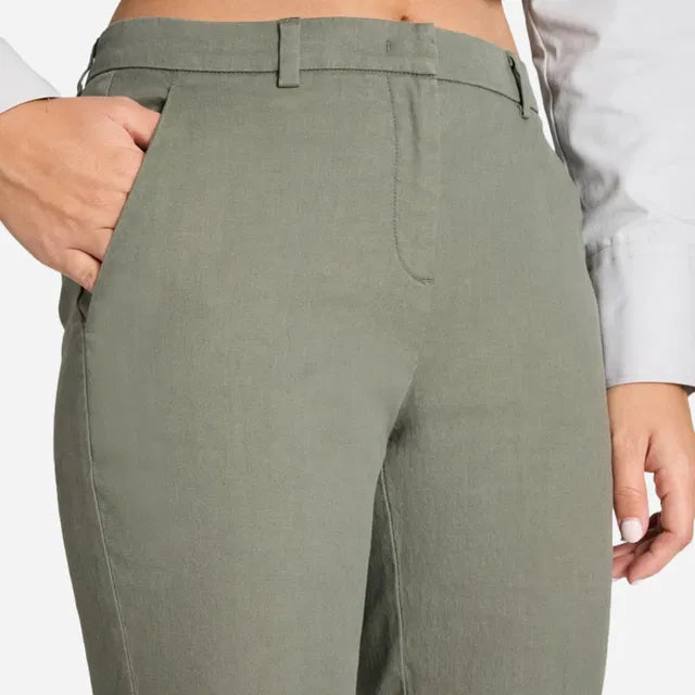 Krystal Pant fra Cambio er en elegant og moderne dressbukse med en skreddersydd silhuett. Modellen har en kortere 27” benlengde med oppbrett, som gir et stilig og velkledd uttrykk – perfekt både til hverdags og mer formelle anledninger.