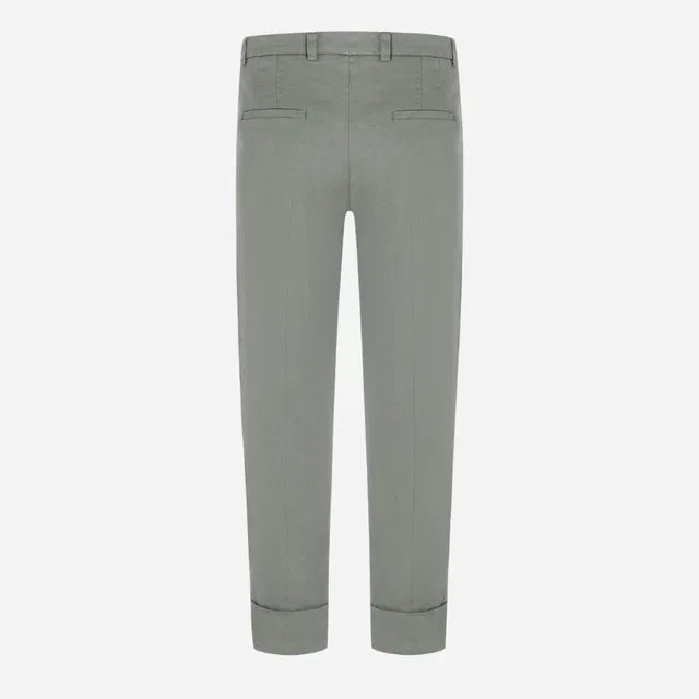 Den elastiske stoffkvaliteten gir utmerket komfort og bevegelsesfrihet, samtidig som buksen holder en skarp og pen fasong gjennom hele dagen. Pressfoldene foran og bak løfter looken og gir en tidløs, sofistikert finish.