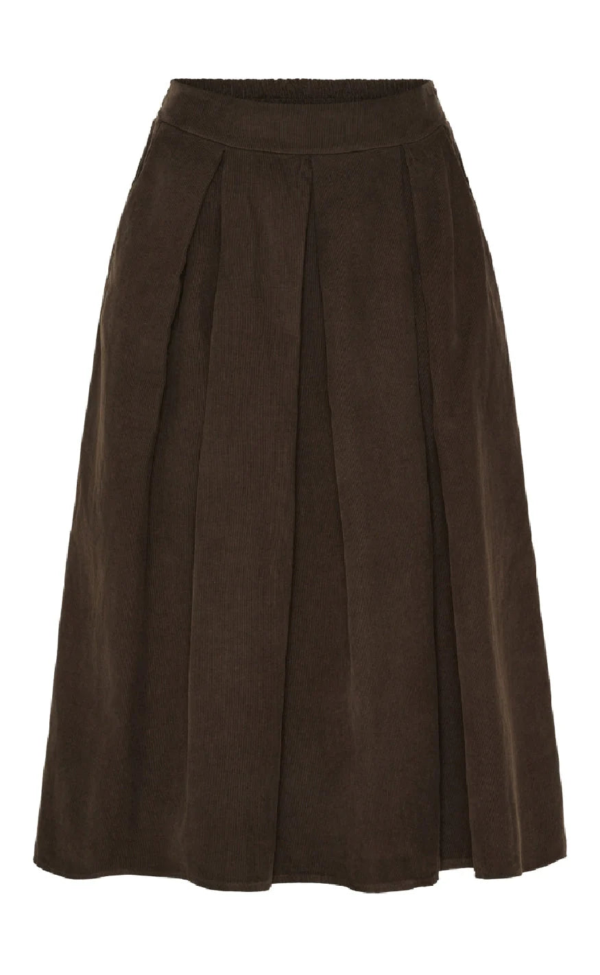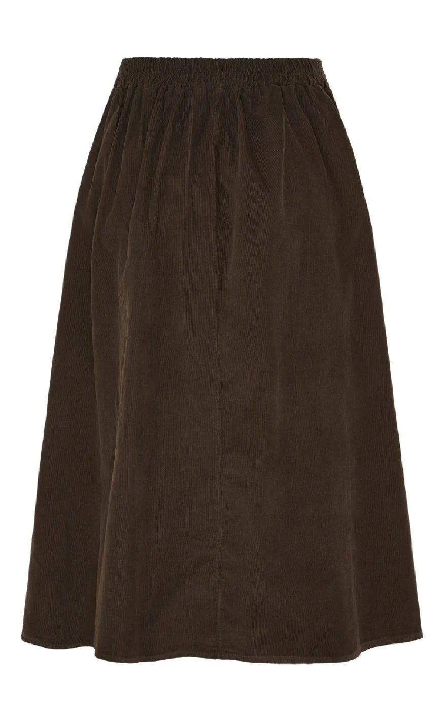 Skjørt i herlig babycord. Strikk i livet og lommer i siden.