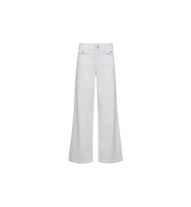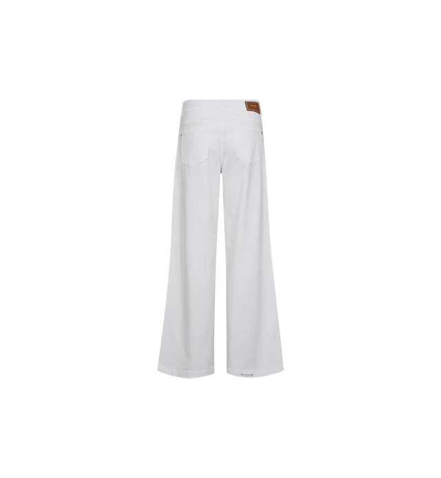 Kanaliser retro-vibber med disse elegante hvite jeansene, et nikk til tidløs 70-tallsmote. Laget av ultramykt stoff for en luksuriøs følelse, har de et flatterende design med høy midje og en stilig vid passform som utstråler uanstrengt eleganse. Blant de iøynefallende detaljene finner du klafflommer som gir et snev av vintage-sjarm og en sofistikert dobbeltknapplukking for en polert finish. Kombiner dem med en inngjerdet, flagrende bluse for å omfavne deres boheminspirerte utseende og skape et utseende som er både nostalgisk og moderne.
