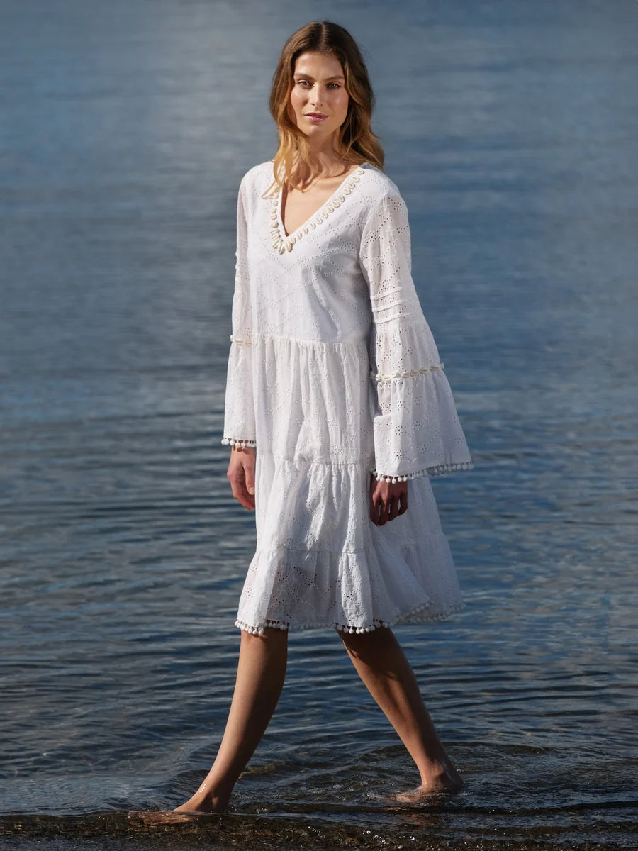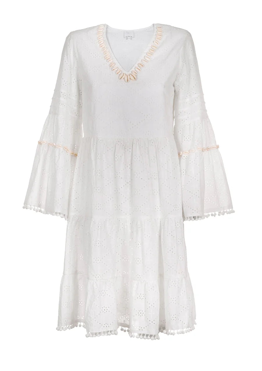 Scarlett Dress White fra Ane Mone er en elegant kjole i hvit farge. Denne kjolen er laget av 100% bomull, noe som gjør den behagelig å ha på. Scarlett Dress White er litt stor i størrelsen, så det anbefales å gå ned en størrelse når du bestiller. Denne kjolen er en perfekt blanding av komfort og stil, og er ideell for enhver anledning.