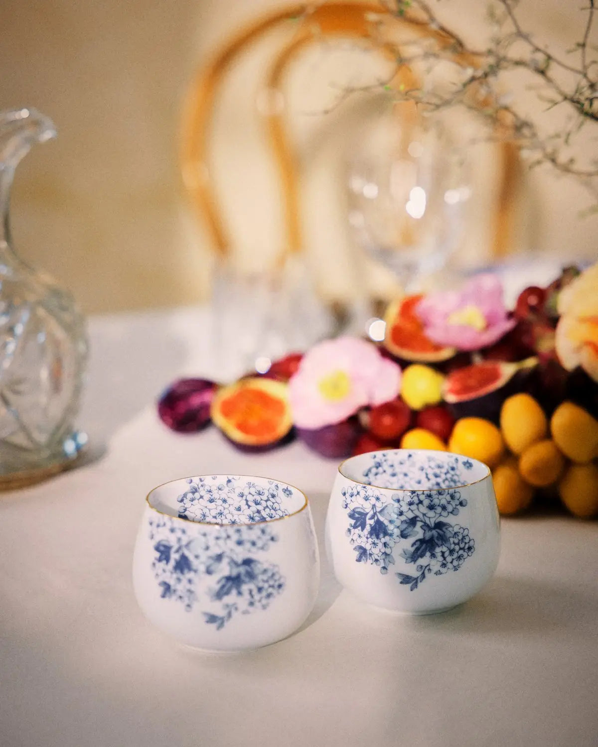 The Porcelain Collection is inspired by Japanese and continental shapes and adorned with English motifs from Tine's incredible archives of vintage and antique pieces, and archive that holds much more than just textiles, but interior and tableware too. The set includes 9 pieces with elegant lines and hand-painted gold details. Designed to be associated, there is as many compositions as table stories.