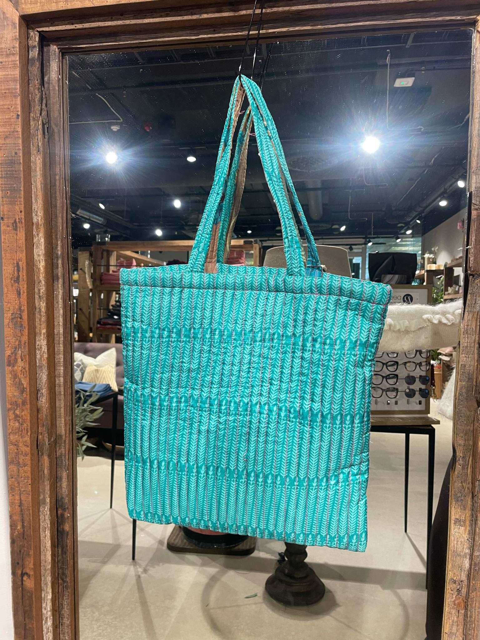 Våre vatterte handlevesker kommer i myke teksturer og livlige farger som fungerer sammen med det spesialutvalgte innerfôret. En sikker kandidat til å bli en av dine favorittvesker – på kontoret, til shopping og happy hour, samtidig som de alltid setter et stilig preg. Hver veske har en positiv sosial og miljømessig innvirkning. Alle produktene våre er laget av brukte sarier, som bidrar til å bevare planeten vår i møte med katastrofer. Størrelse – bredde: 38 cm, lengde: 41 cm, håndtaksavstand: 27 cm. Belysning og skjermer kan forårsake små variasjoner i fargeutseende.
