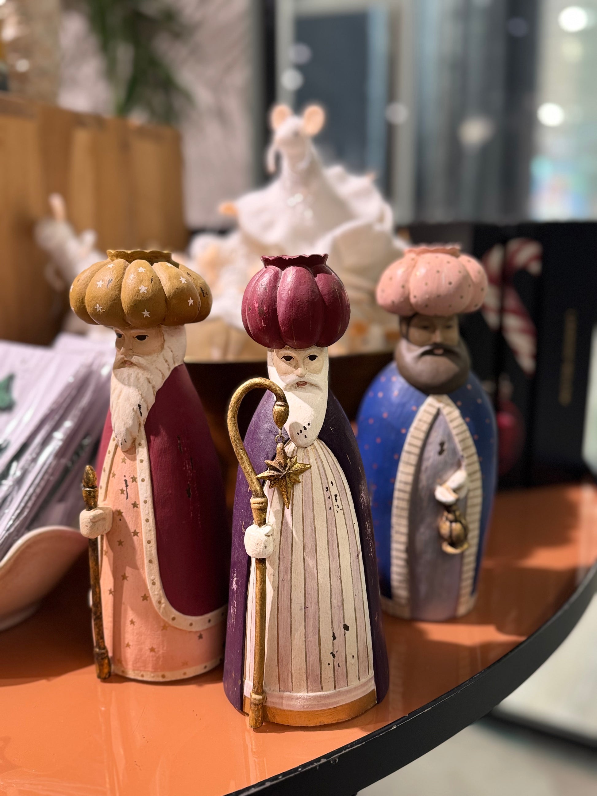 Melchior, Kaspar og Balthasar følger stjernen på sin reise mot Betlehem, bærende hvert sitt lys for å hilse på det nyfødte Jesusbarnet. I deres hender bærer de håpets flammer, som skinner klart i mørket, og leder dem trygt gjennom natten. Figurene symboliserer tro, visdom og en reise mot lys og kjærlighet.