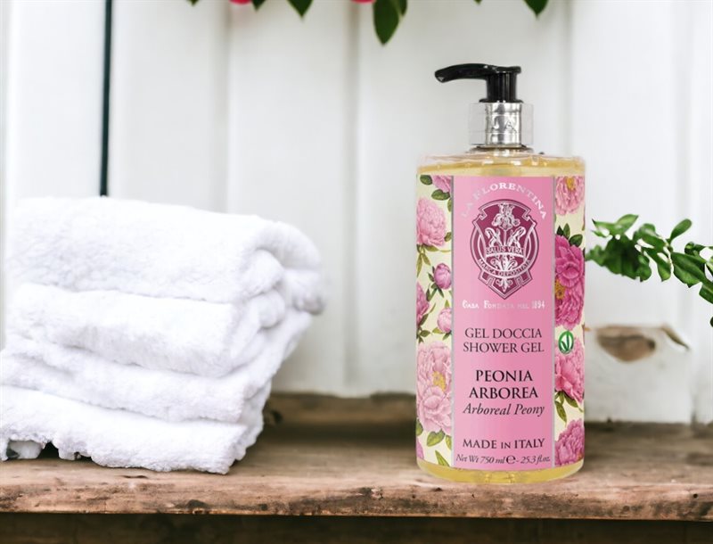 Dusjgele med et fuktighetsgivende og rensende mykt skum. Inneholder blant annet olivenolje, naturlige ekstrakter og en nydelig duft av pioner. Et elegant tillegg til badet eller kjøkkenvasken. En nydelig duft av Toscana.