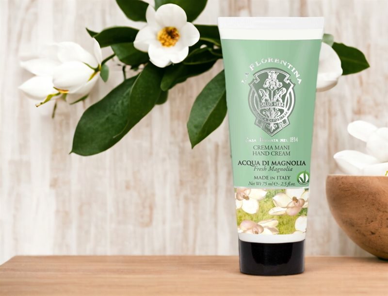 Fuktighetsgivende håndkrem som kommer i et vakkert design. Inneholder blant annet olivenolje og naturlige ekstrakter. Med en nydelig duft av Magnolia.