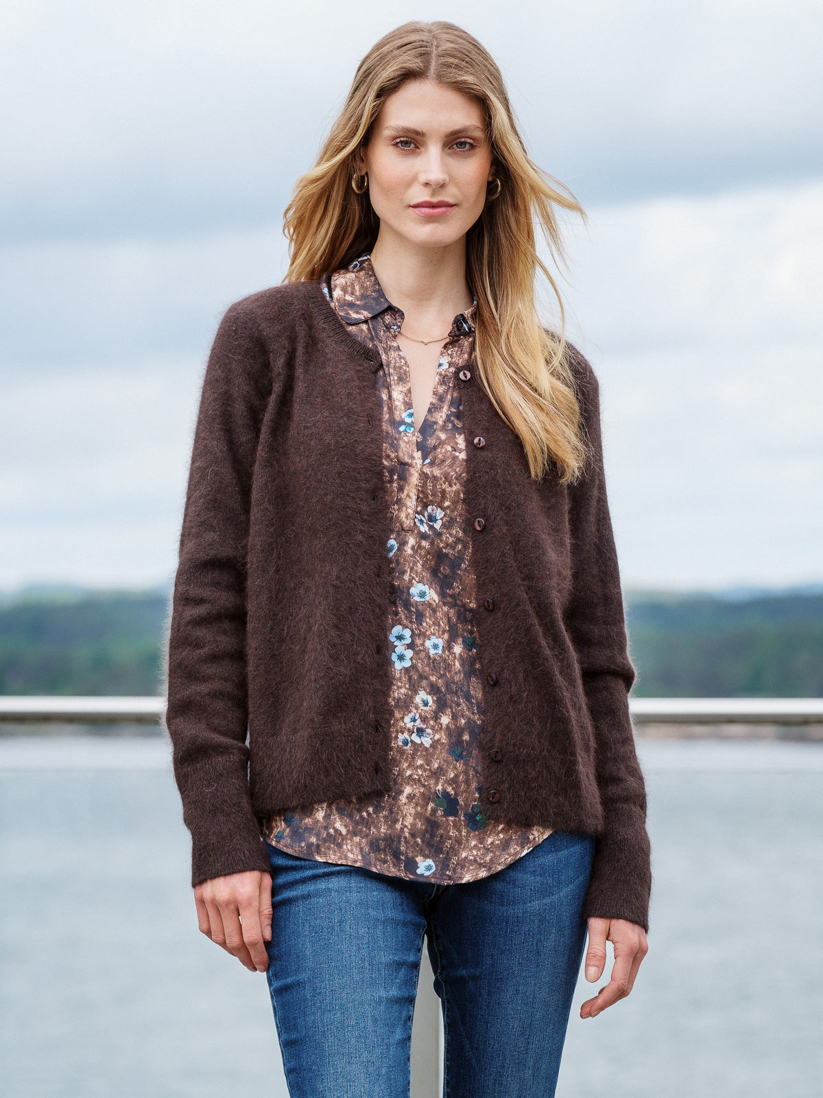 Lekker cardigan i den kjente angorakvaliteten. Rund hals, lange ermer og knappelukking i front. Myk og deilig, passer til alle årstider. Normal i størrelsen.