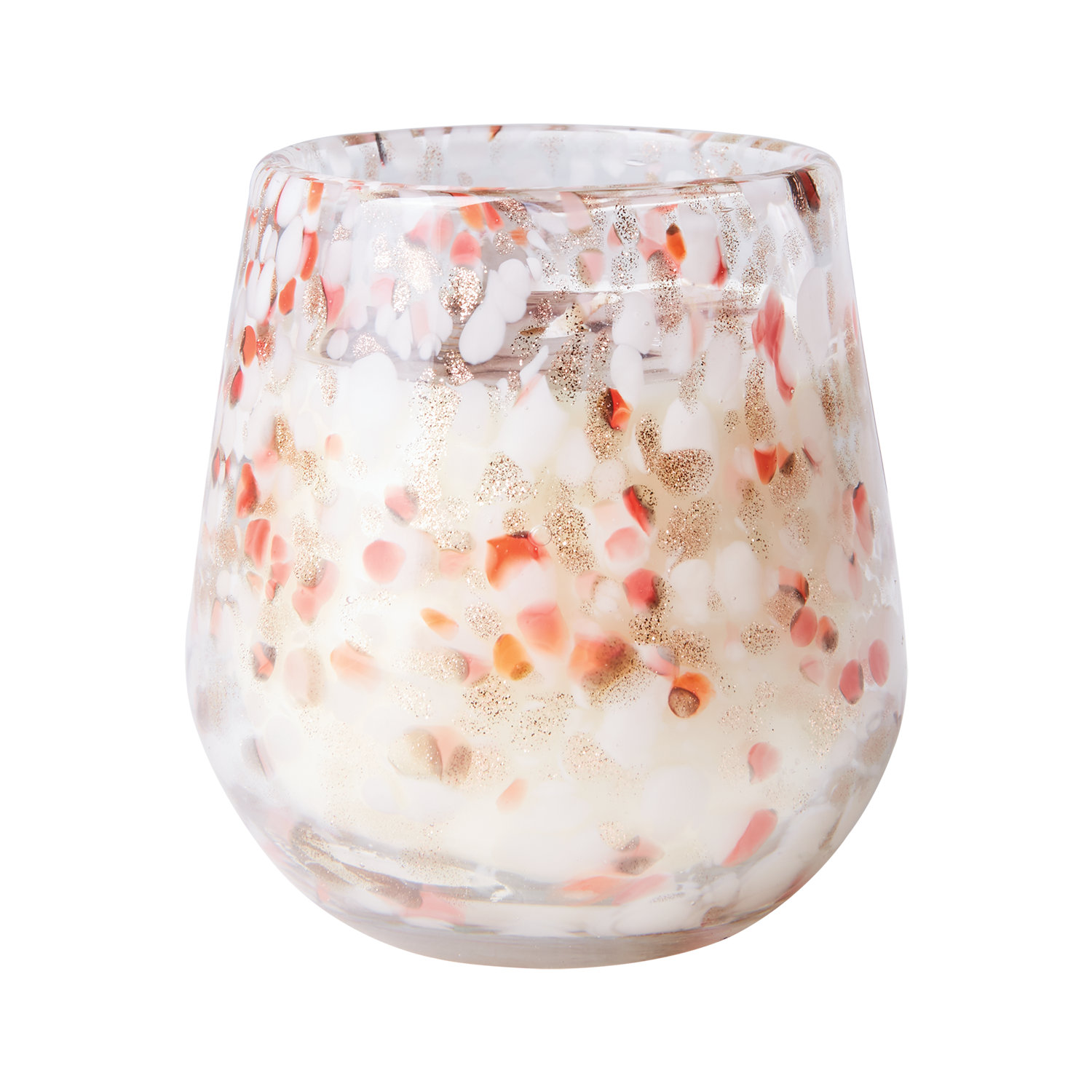 Farget glass. Syntetiske dufter. Munnblåst. Bobler og uregelmessigheter kan forekomme. Størrelses- og fargevariasjoner kan forekomme.